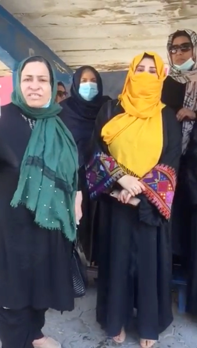 Female employees said they had been trying to come to work for several weeks only to be told to return to their homes, according to videos filmed outside the building seen by Reuters.