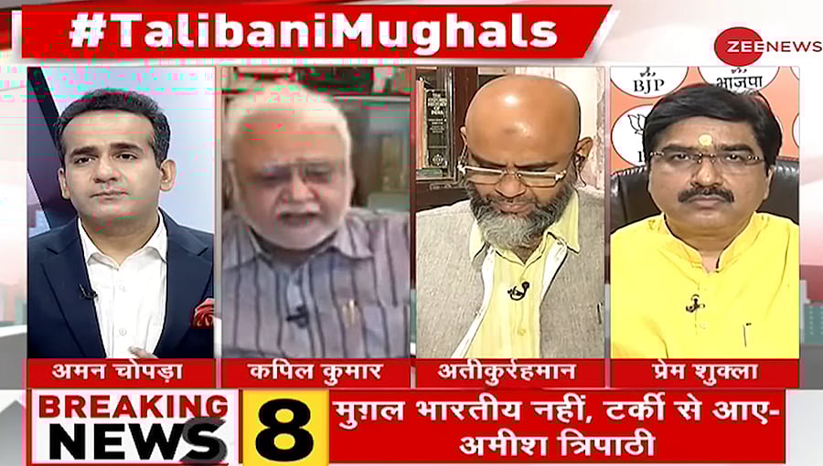 “Mughals weren’t Muslims. Why do some Indian Muslims glorify the barbaric Mughals? The ancestors of all Indians were Hindus,” Aman Chopra proclaimed on his Zee News show Taal Thok Ke on August 26.