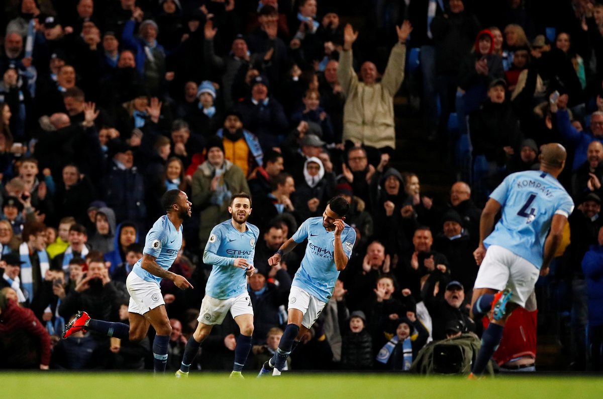 LONDON (Reuters) - Raheem Sterling scored a second-half hat-trick as leaders Manchester City beat Watford 3-1 on Saturday while Liverpool kept the gap at one point by overcoming Burnley 4-2 on Sunday.