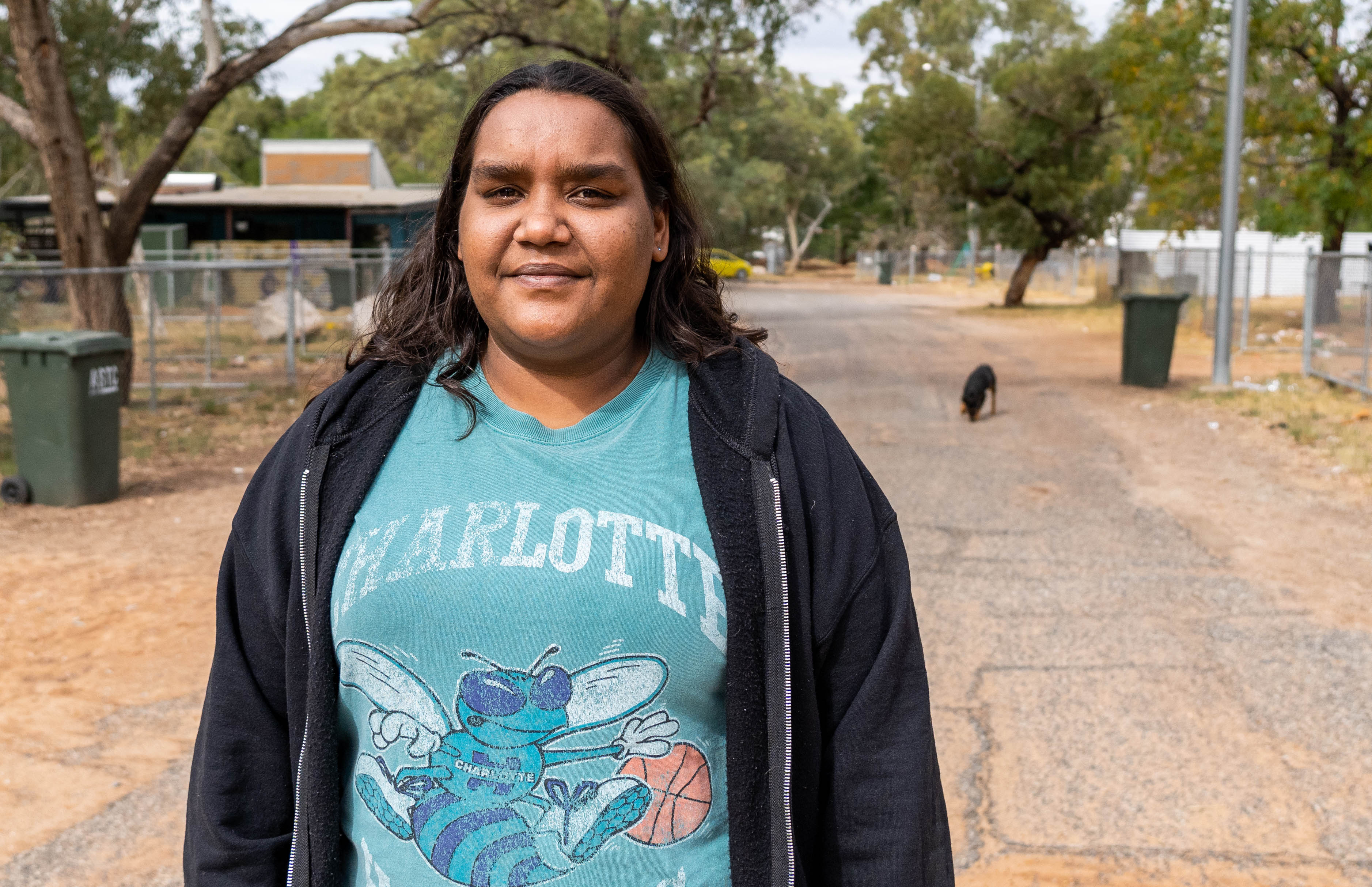 Connie Shaw, 23, works as a youth worker in her community and is part of the Tangentyere Women's Family Safety Group (TWFSG), working to stop gendered violence in Alice Springs' Town Camps.