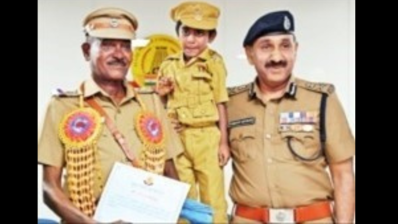 Charalathan with 36 years in service was among the six police officers who retired from the Avadi commissionerate on May 31. M Pranav, Charalathan’s grandon who was walking around in the hall on a police uniform, caught the eyes of commissioner Rathore who made the boy sit on his chair and posed with him.