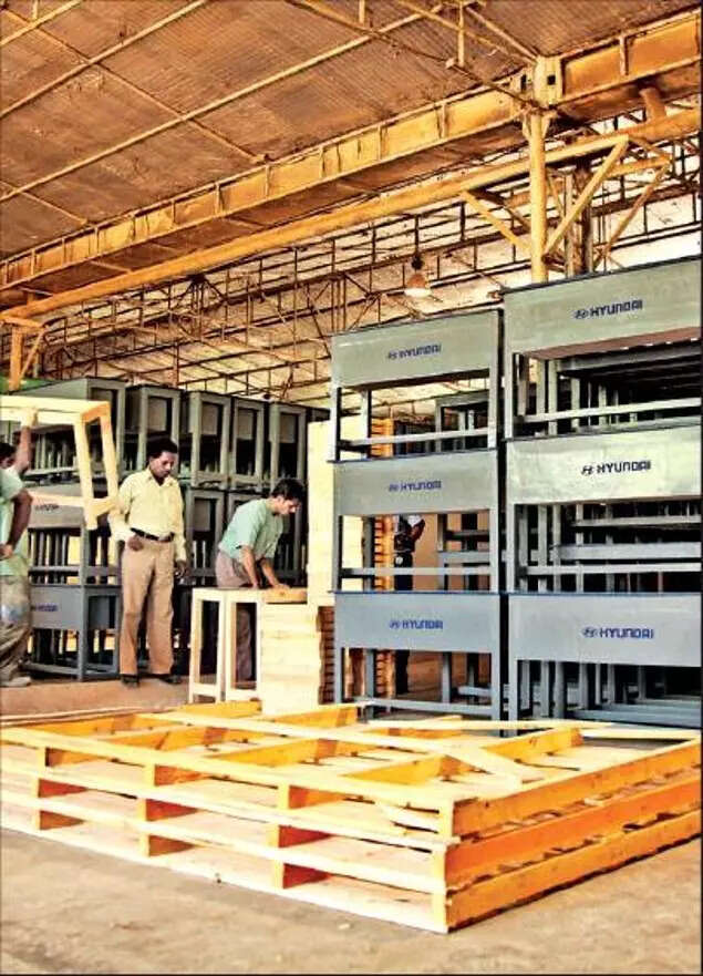 For more than 15 years now, Korean carmaker Hyundai Motor India has been using the wood from the boxes, in which car parts and machinery are imported, to make benches and desks for schools around its factory at Irungattukottai. It has hired 10 carpenters to make them.
