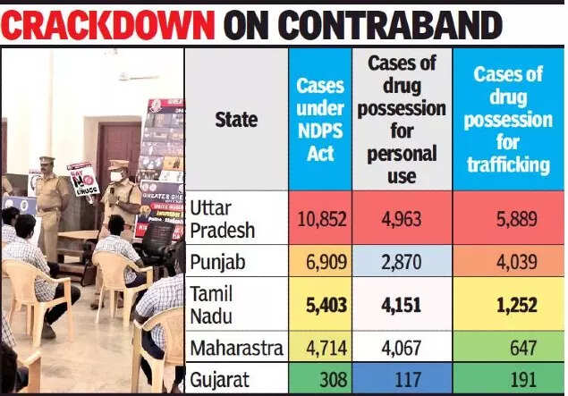 CHENNAI: Tamil Nadu stood third in the country in terms of cases registered under the Narcotic Drugs and Psychotropic Substances Act, 1985. Recent data from the National Crime Record Bureau (NCRB) revealed that Uttar Pradesh topped the table in this aspect and is followed by Punjab.
