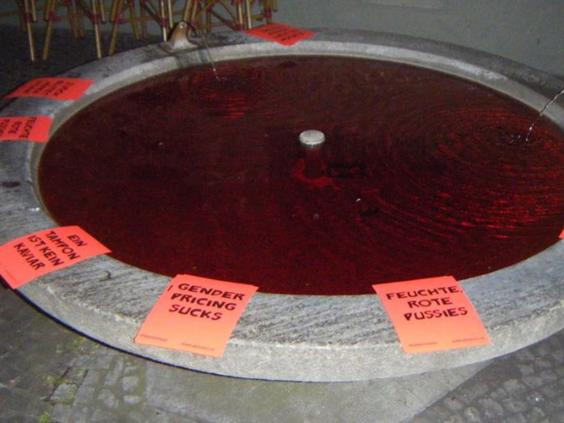 Protesters in Zurich have turned 13 fountains blood red in protest at the so-called tampon tax and taboos around menstruation.