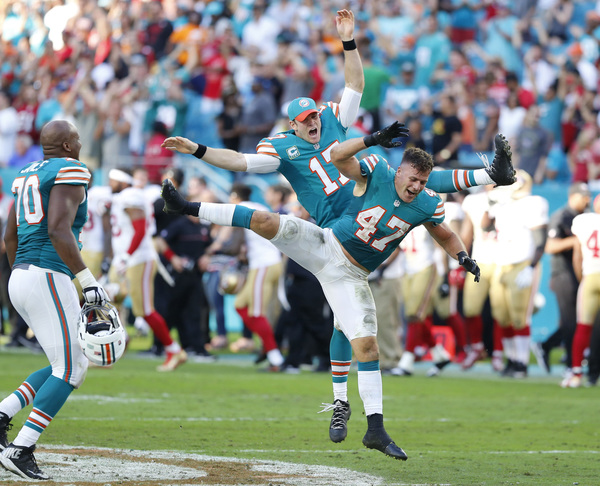 San Francisco entered the game on a nine-game losing streak. The Dolphins visit Baltimore next week.