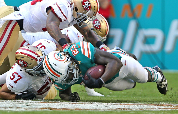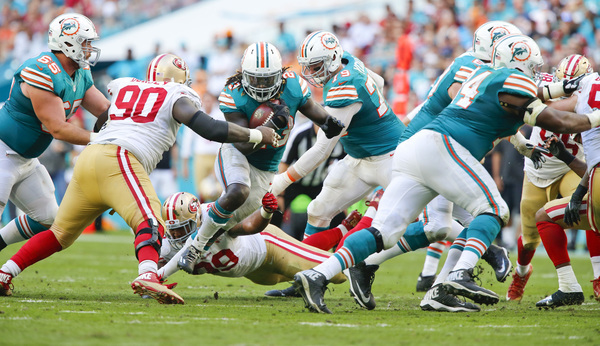 This is a game that featured two of the NFL's worst rushing defenses. San Francisco entered dead last in the NFL at 179 yards per game while the Dolphins were 30th at 128 yards per game.