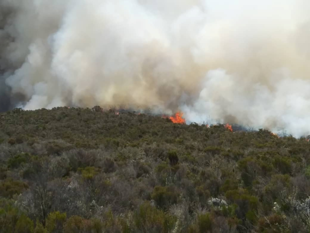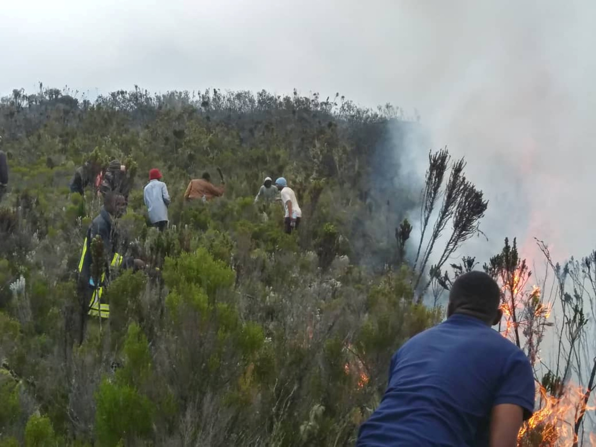 The fire, initially fanned by strong winds, erupted on Sunday at the Whona area, a rest centre for climbers using Mandara and Horombo, two of the routes tourists take up the mountain. Officials said winds had weakened on Tuesday.