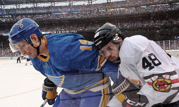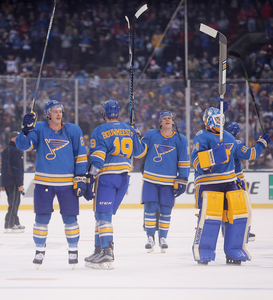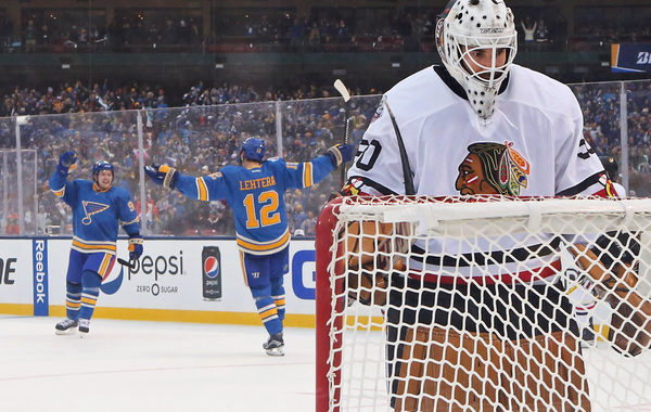The Blues (20-13-5) won their first-ever Winter Classic after falling behind by a goal early. The Blackhawks (23-12-5) lost their fifth game in six attempts, and fell to 1-4-0 when they play outside.