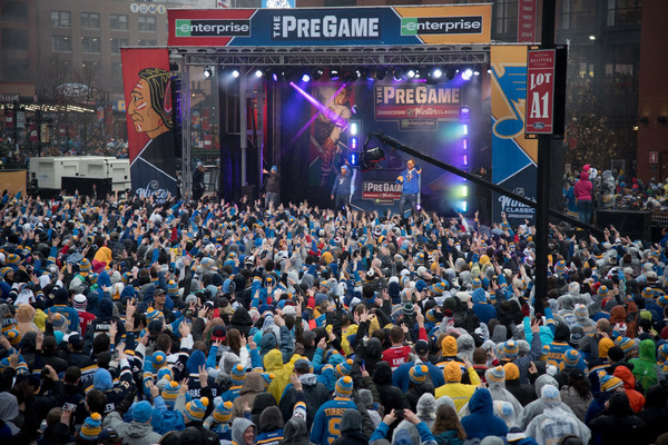 Nelly performed before the game. Brett Hull dropped the first puck. Jon Hamm and some Cardinals _ Kolten Wong and Kevin Siegrist were among those in attendance _ watched from the Busch Stadium seats. And there was no shortage of beer.