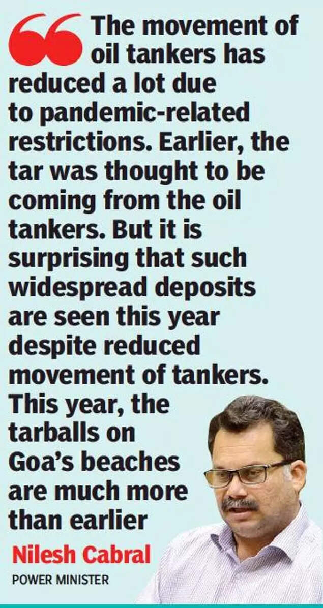 PANAJI: After large blobs of tar left sand across Goa’s beach stretches scarred with the black substance, environment minister Nilesh Cabral said that this is one of the worst occurrences of tarball deposits seen on Goa’s beaches.