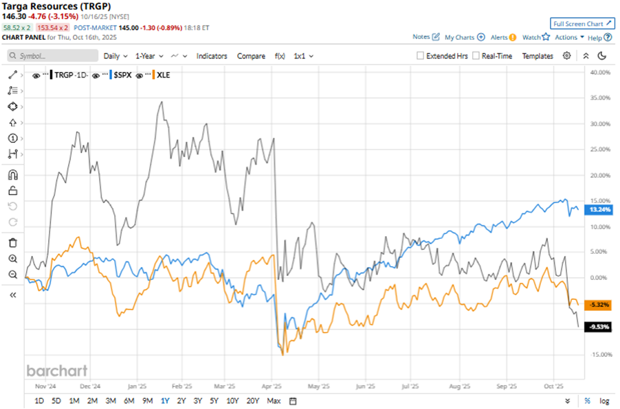 Targa Resources’ shares have come under pressure over the past year amid shifting commodity prices and broader economic conditions, which have affected midstream companies. Plus, doubts about how fast Permian oil output will grow have been putting pressure on the stock lately.