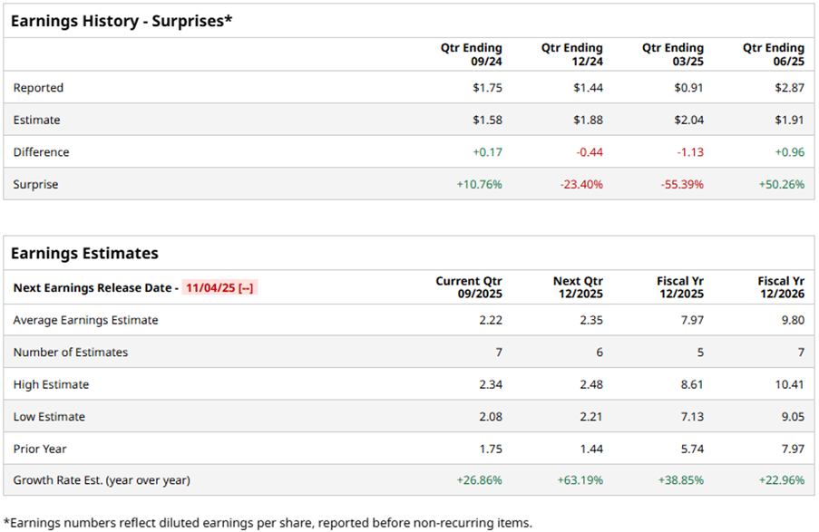 Targa Resources is set to report its third-quarter results soon. Ahead of the results, Wall Street analysts project the company’s bottom line to expand. For the third quarter about to be reported, its profit is expected to grow 26.9% year-over-year (YOY) to $2.22 per diluted share. Additionally, for the current fiscal year, analysts project its profit to increase by 38.9% from the prior year to $7.97 per diluted share and rise by another 23% annually to $9.80 in fiscal 2026.