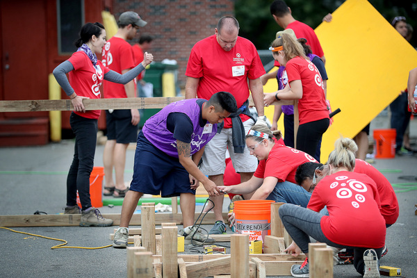 On the same day in September, Target and KaBOOM! built playgrounds in Minneapolis at Northeast College Prep, Sabathani Community Center and Waite House, part of Pillsbury United Communities, a nonprofit.