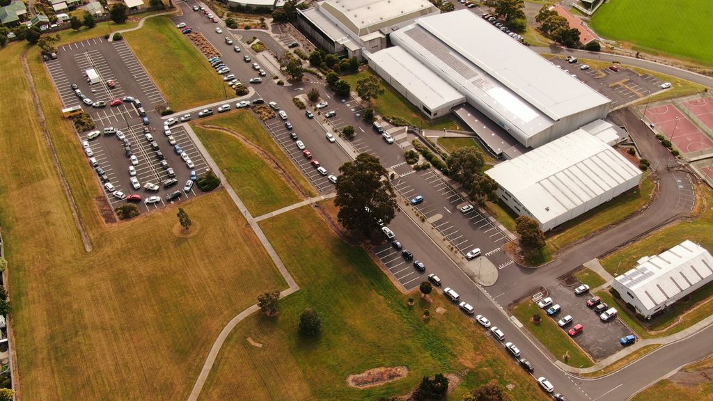 In scenes similar to most states, Tasmanians have been struggling to get tested, with lines stretching about 3.5 kilometres at southern Tasmania's newest testing clinic, the Kingborough Sports Centre, this morning.