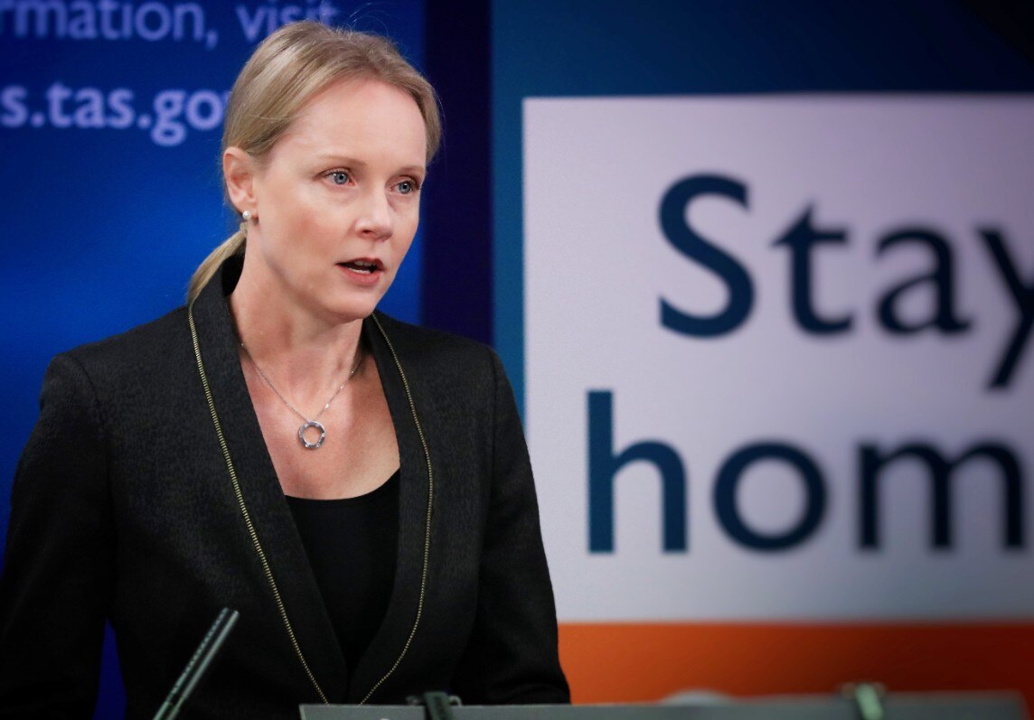 At a press conference on Wednesday, Premier Peter Gutwein revealed Ms Courtney had been unable to return to Tasmania this week as planned after testing positive for coronavirus.