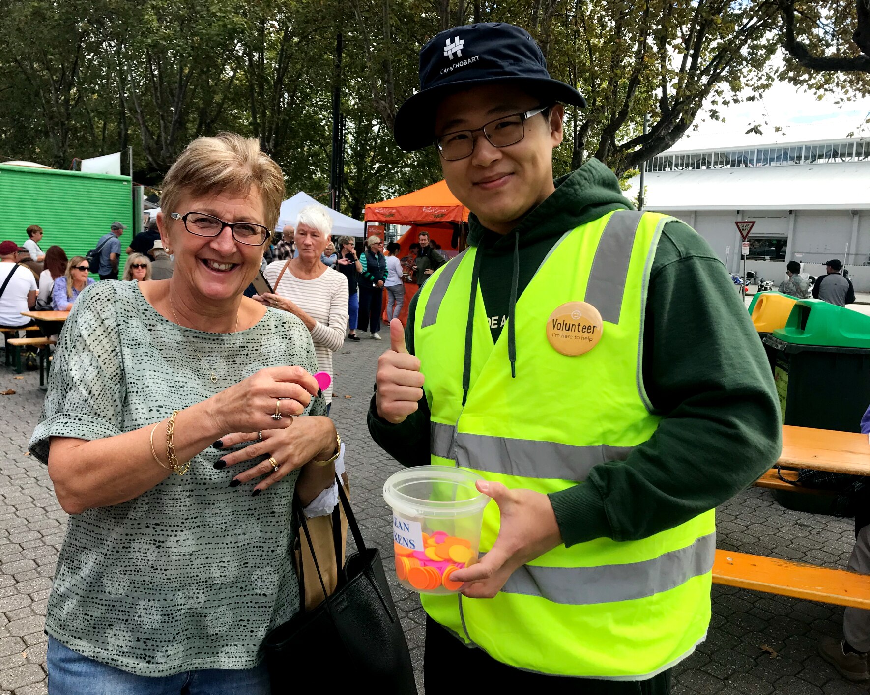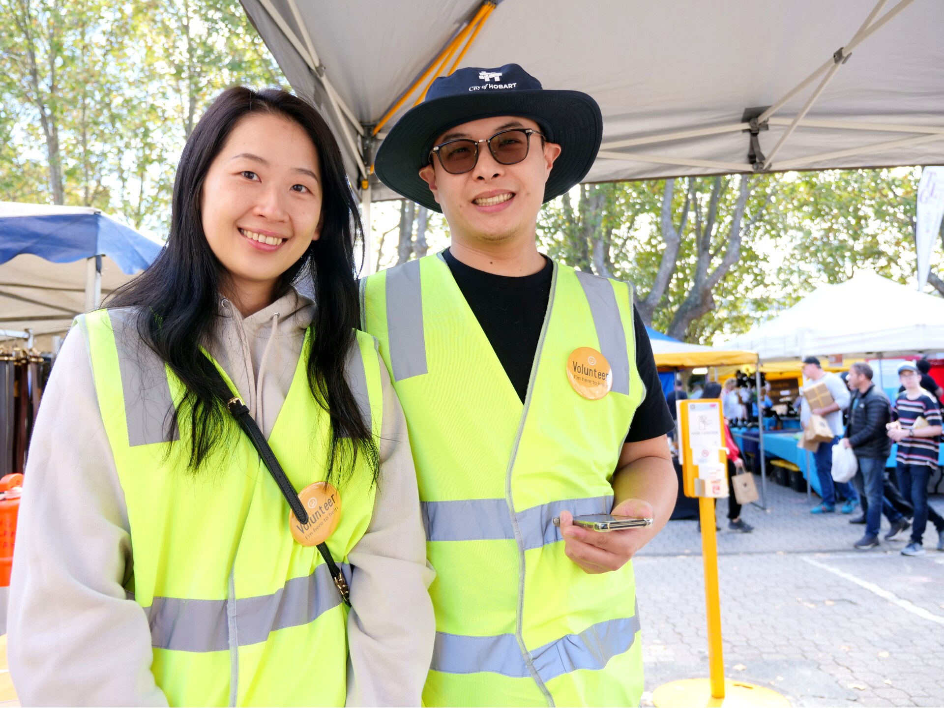 Chin Fang Chen, who has been volunteering at the market with her husband Zico Chong since they moved to Tasmania from Taiwan two years ago, said she appreciated the friendliness of people who passed through the entrance.