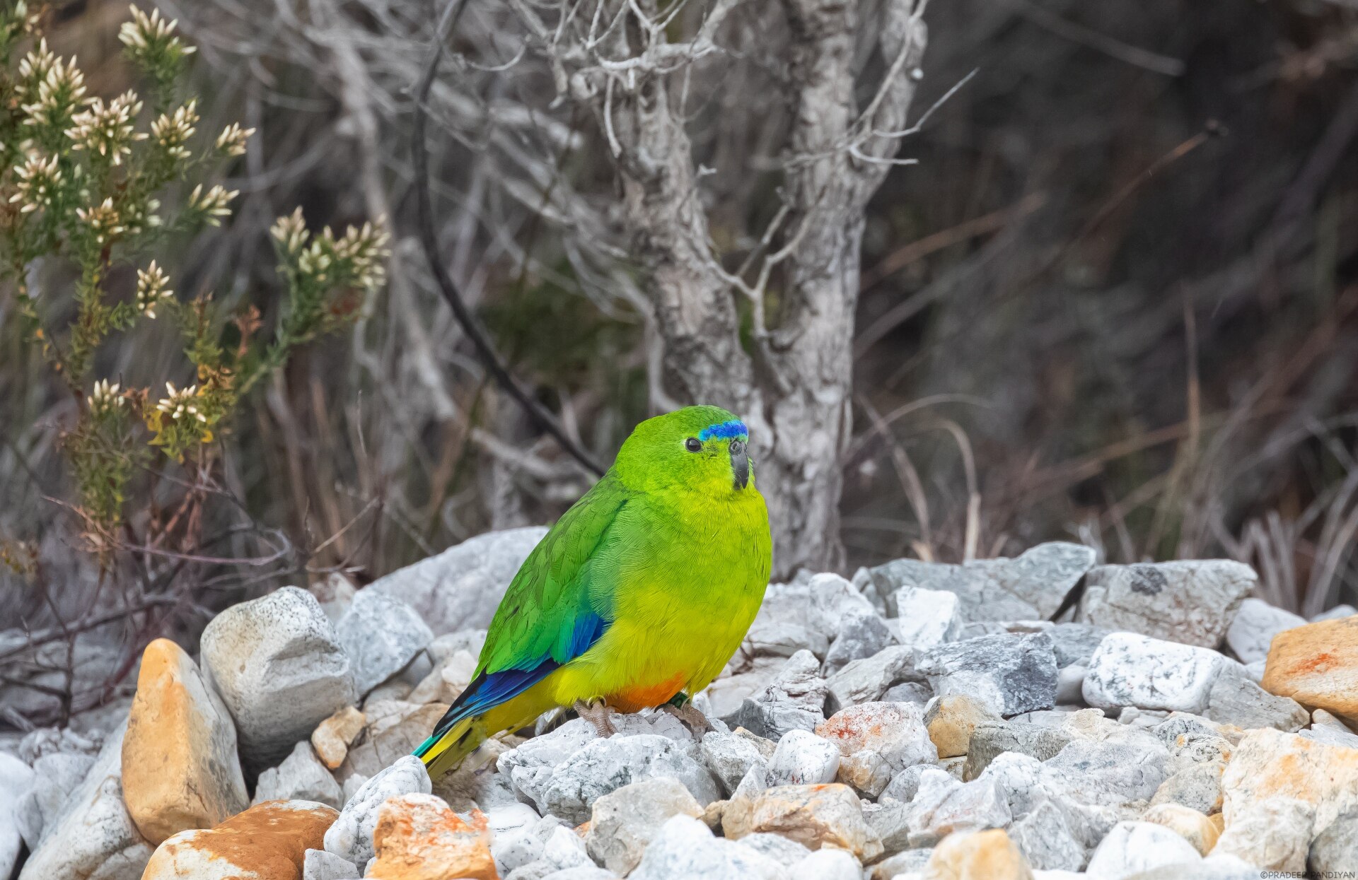 He says he enjoys the adventure and remoteness bird photography requires, like spending time at Melaleuca in Tasmania's wild south west taking photos of the critically endangered orange-bellied parrot.