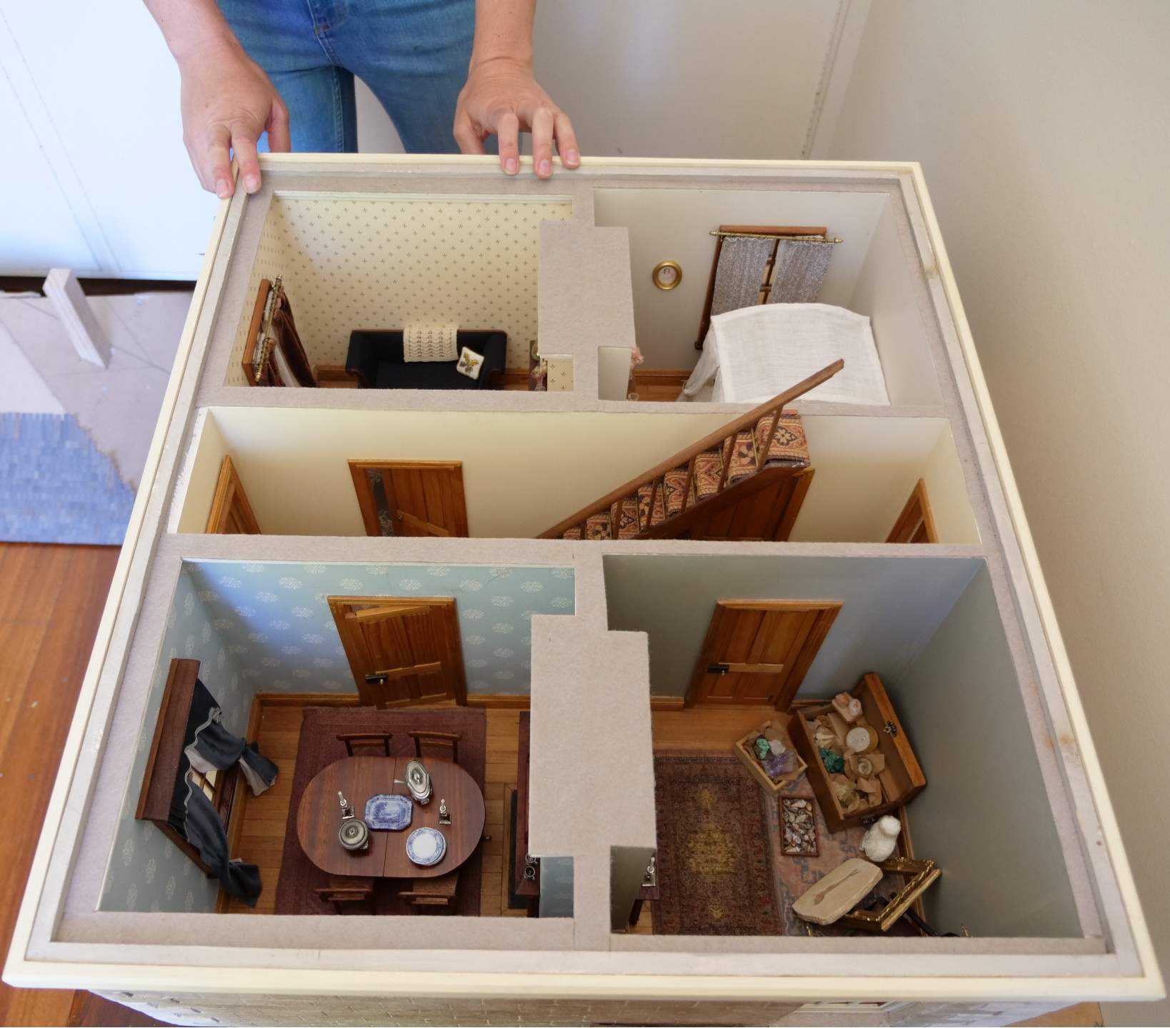That was in 2017 and the doll's house now has four rooms, and a staircase, but it is far from finished.