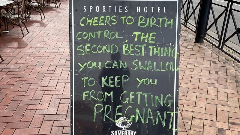 "I'm not a prude or anything like that but what was written on there was so shocking to read on a sandwich board outside a pub.