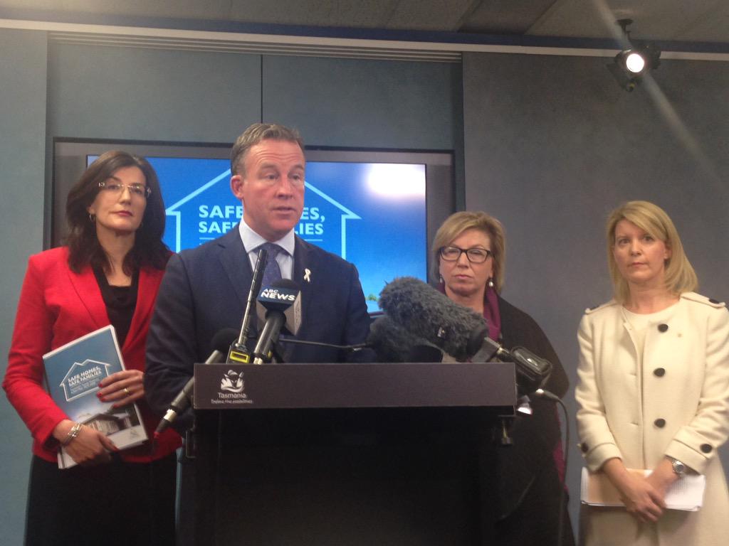 "Jacquie is stepping down to spend more time with her family and I wish her the very, very best, and I thank her sincerely for her hard work and her dedication," Mr Rockliff said, fronting a press conference by himself.
