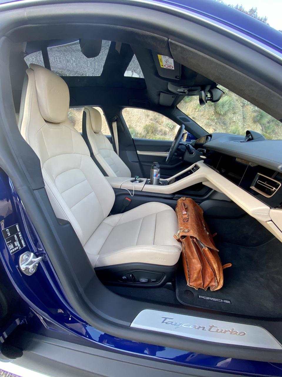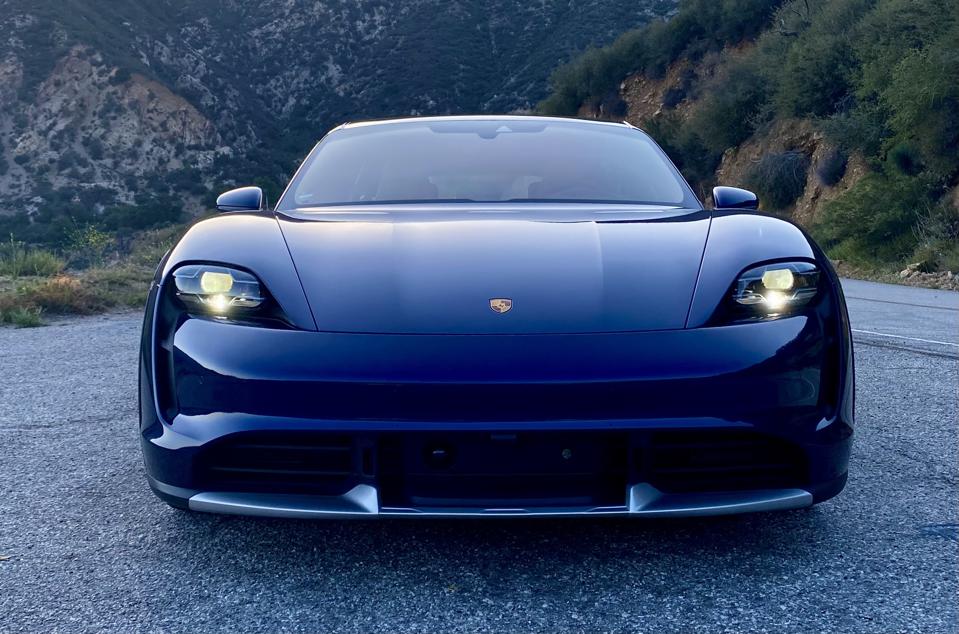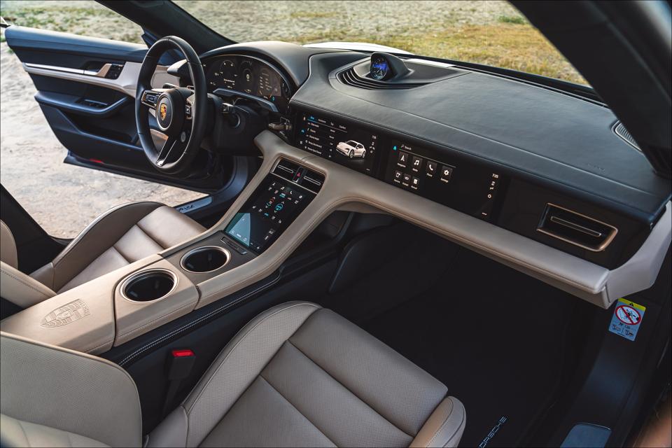 In spite of its considerable weight, Taycan changes direction almost on brain waves, its dynamic capabilities giving testament to the Porsche development drivers who invested man-years pounding Taycan development hacks around proving grounds, the Nürburgring, and on exotic highways around the globe. Combination of speed, agility and the high-pitched humming soundtrack of electric motors front and rear turns an urban foray into the chase scene from Star Wars “Attack of the Clones,” Obi-Wan and Anakin slashing through nighttime traffic.