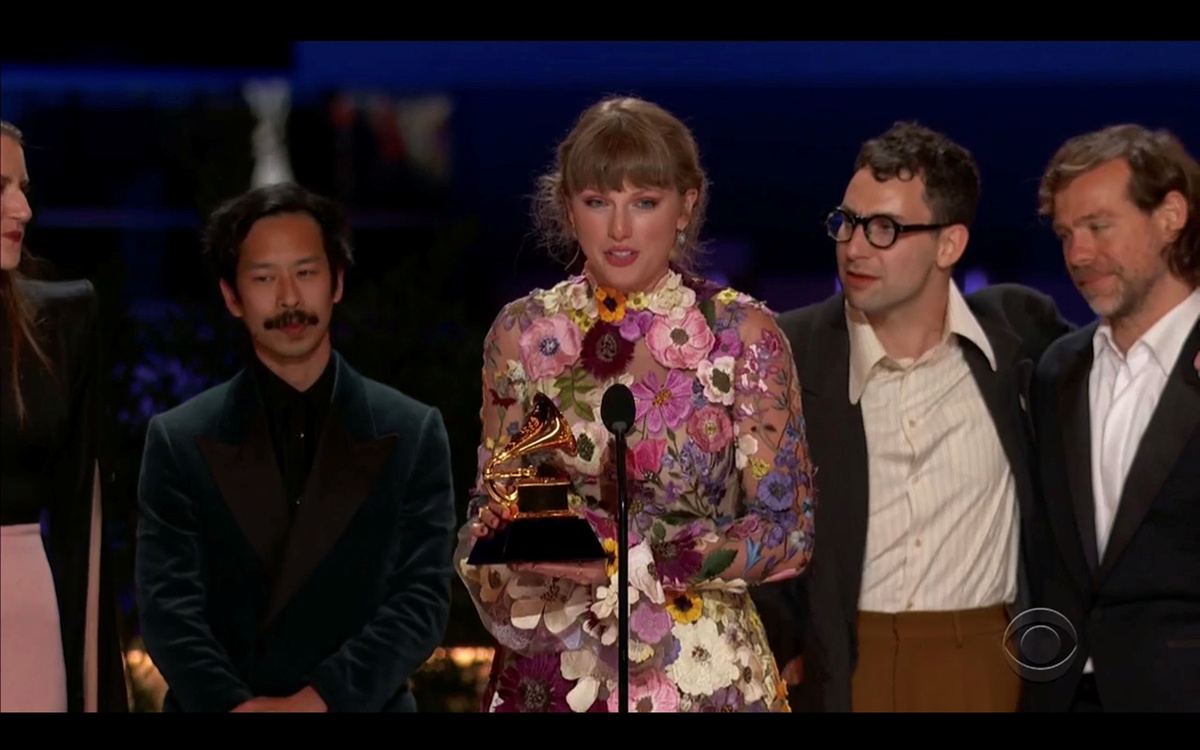 Swift's surprise record "Folklore," recorded during coronavirus lockdowns, was named album of the year and made Swift, 31, the first woman to take home that prize three times.