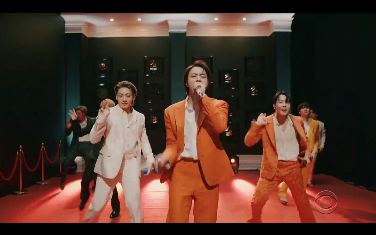 K-Pop band BTS lost in the best pop duo or group performance against Lady Gaga and Ariana Grande for their single "Rain on Me" but performed their hit English-language single "Dynamite" from South Korea at the close of the show.