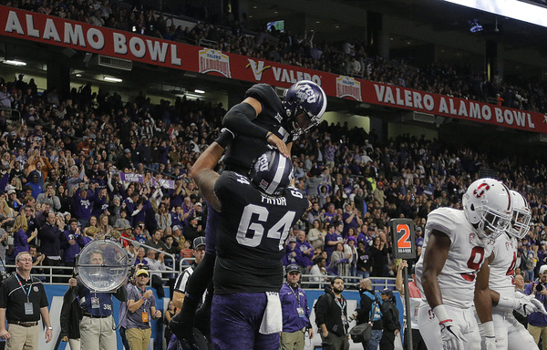 For the second time in three seasons, the Horned Frogs rallied from a big deficit to win the San Antonio bowl game. On Jan. 2, 2016, they came back from a 31-0 halftime deficit behind TCU folk legend Bram Kohlhausen.