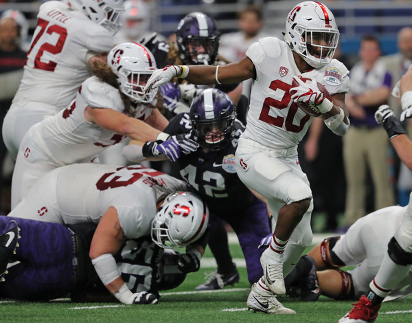 Bryce Love's 15-yard run opened the scoring for a 7-0 Stanford lead with 1:06 in the first quarter.