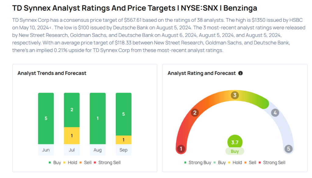 - B of A Securities analyst Ruplu Bhattacharya maintained TD Synnex with a Buy and raised the price target from $170 to $180.
