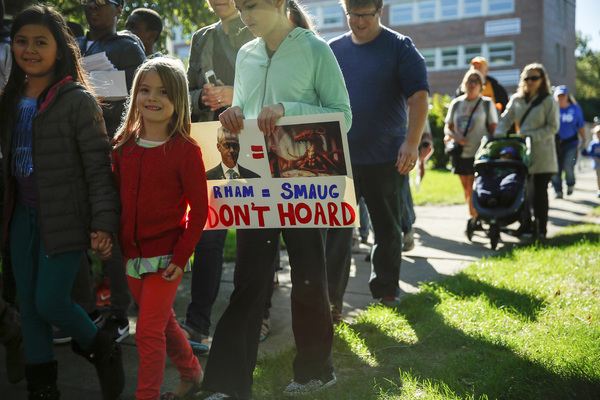 Early Monday, union allies protested near Mayor Rahm Emanuel's North Side home as part of an effort to pressure the mayor's administration into pulling millions of dollars into CPS from special city taxing districts. Union members also planned an evening demonstration near Willis Tower.