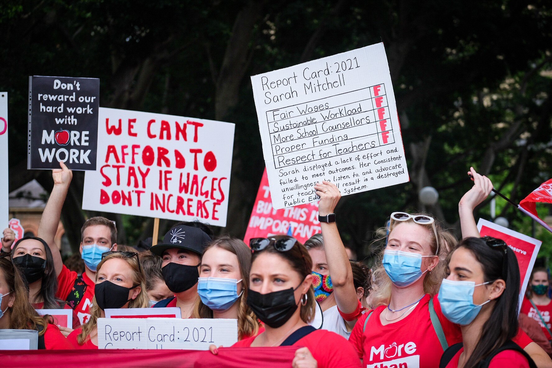 On a cool May morning two weeks earlier, a sea of angry public school teachers in red T-shirts builds in Hyde Park, Sydney.