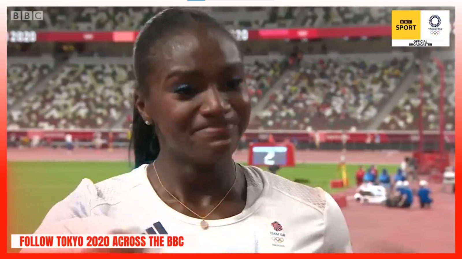 (Picture: BBC)Team GB sprinter Dina Asher-Smith has received an outpouring of support after a hamstring injury made her pull out of the 200m race.