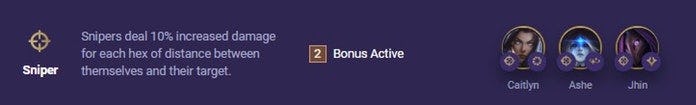 Your number priority for this build is to find any combination of Ashe, Caitlyn, and Jhin. You only need two of these units in your team to unlock the Sniper bonus, so choose who you want on the board depending on how you roll. Caitlyn is a 1-Cost unit so it’s viable to try and get her to 3-Star early in the game if you have the economy to re-roll.