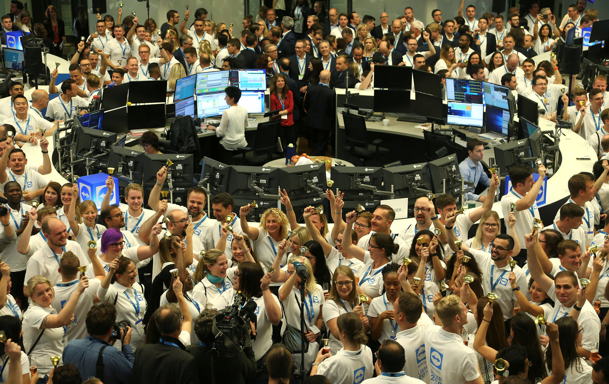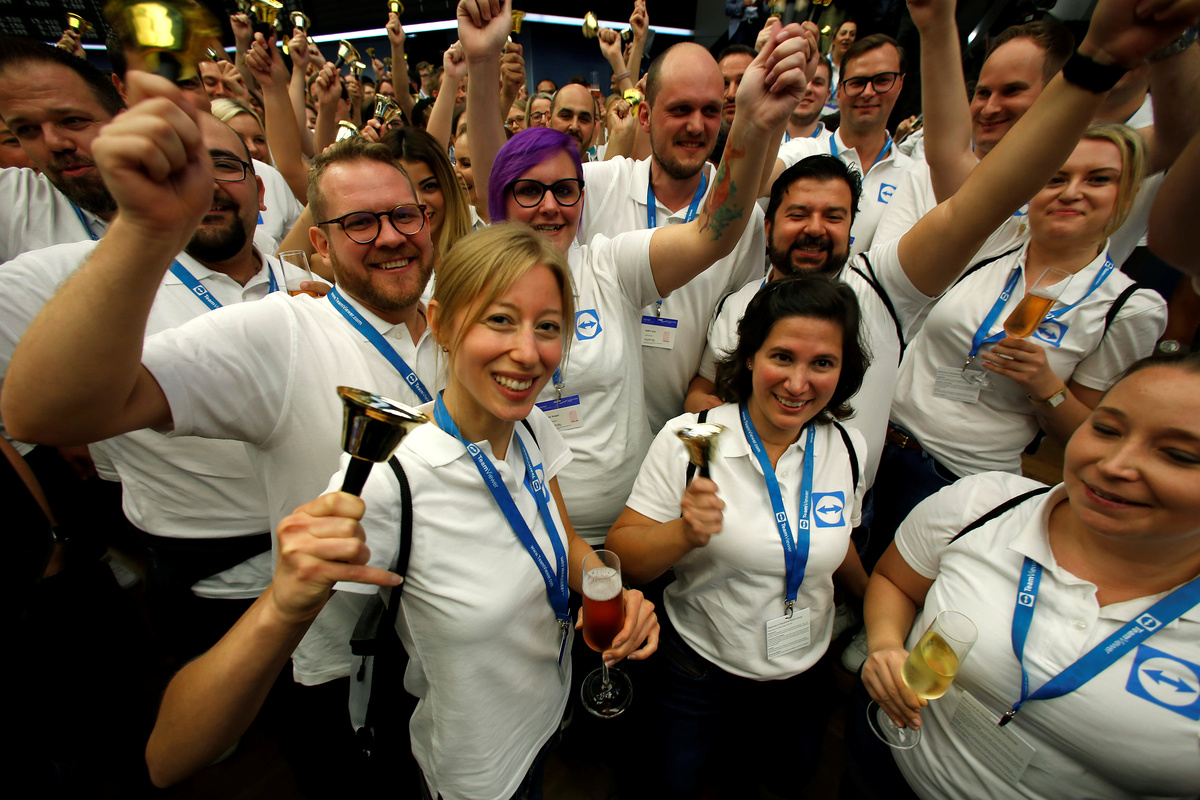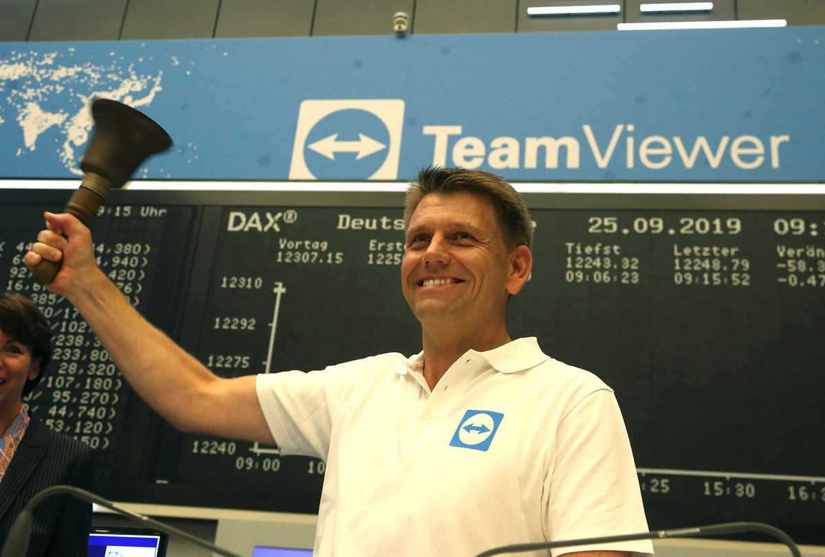 Oliver Steil, Chief Executive Officer of software company TeamViewer AG, attends TeamViewer's initial public offering (IPO) at the Frankfurt Stock Exchange in Frankfurt, Germany, September 25, 2019. REUTERS/Ralph OrlowskiEmployees of software company TeamViewer AG attend TeamViewer's initial public offering (IPO) at the Frankfurt Stock Exchange in Frankfurt, Germany, September 25, 2019. REUTERS/Ralph Orlowski