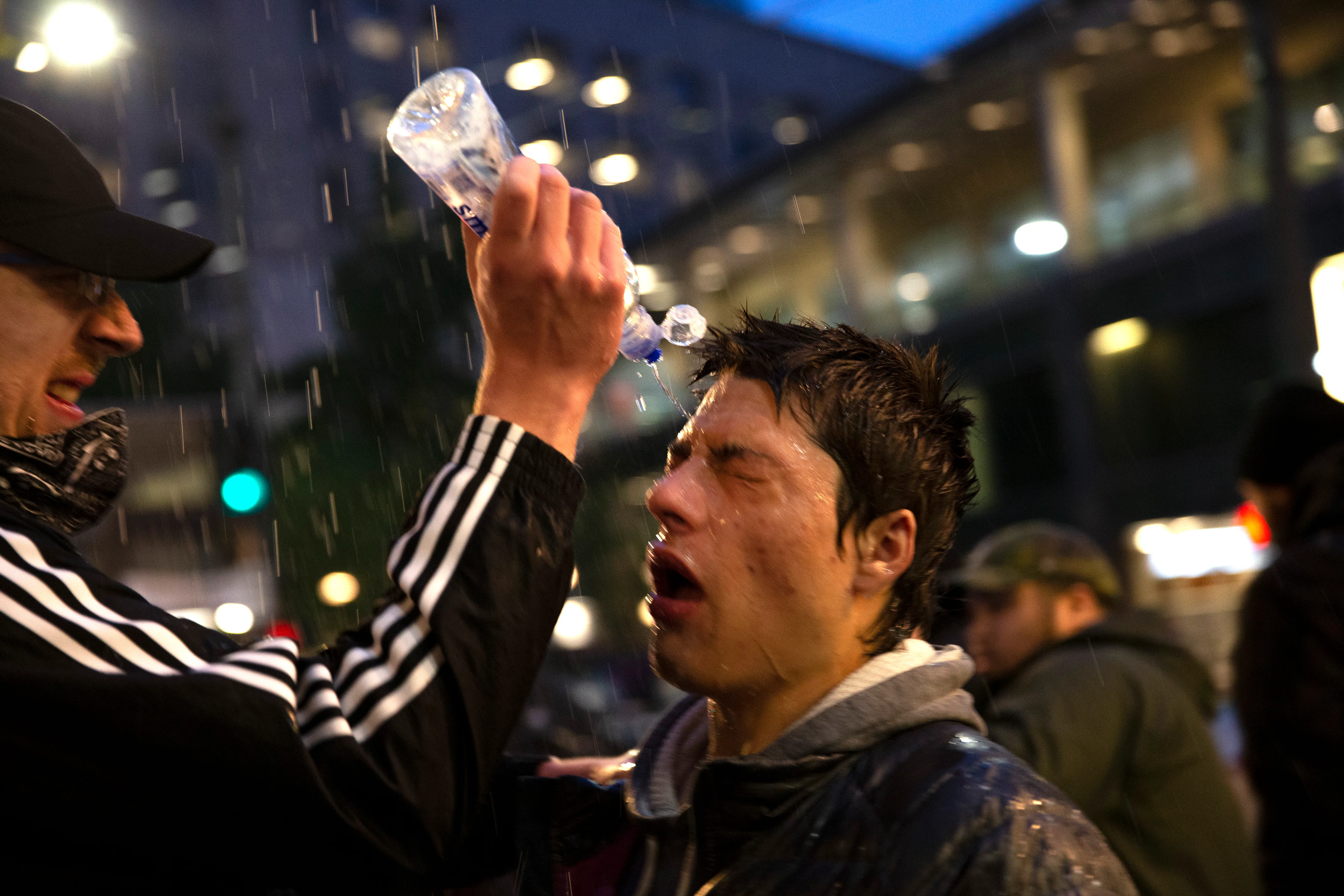 Tear gas invades the body's mucous membranes — the eyes, nose, mouth, skin — causing severe irritation, inflammation, and pain, as well as a running nose and tearing eyes. It can trigger uncontrollable coughing, choking, chest tightness, and temporarily blind those exposed.