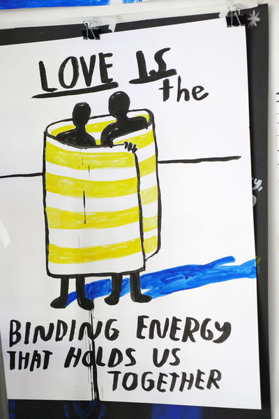 Even on a Friday afternoon, there's no escaping the Facebook workers and their families who venture in and out of the studio to tour the space or look at artwork.