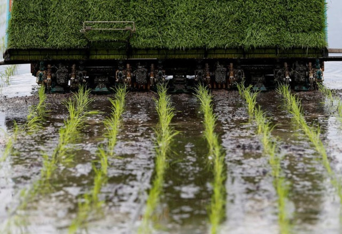 The company grows several different varieties so that planting and harvesting are spread out, and uses electronic sensors to measure water levels and temperature in the paddies as well as the condition of the rice.