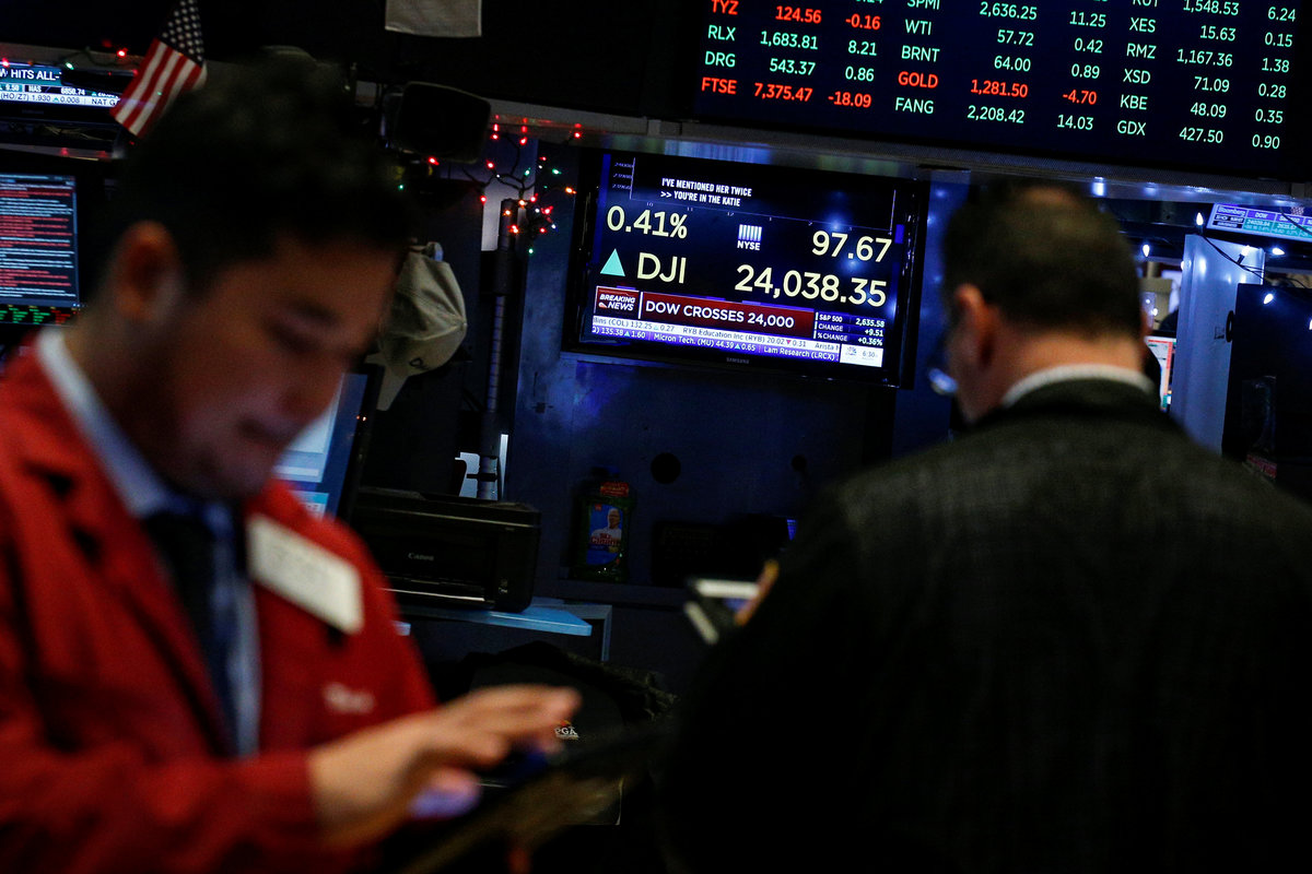 The Dow closed above 24,000 for the first time. The S&P and the small-cap Russell 2000 <.RUT> also set record closing highs.