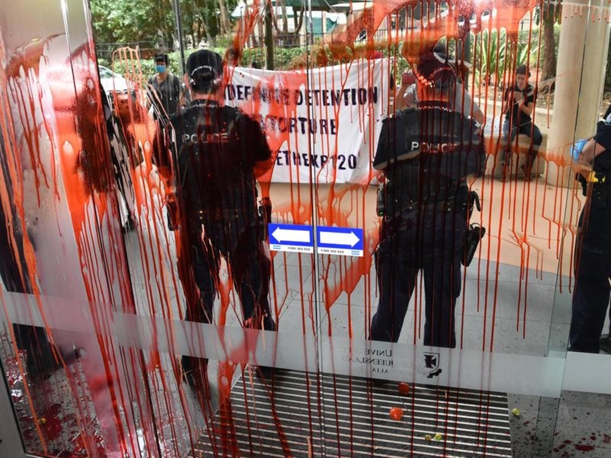 The court heard Hingst took red paint from a bag before squirting it on the glass doors of the university's Australian Institute of Bio-engineering and Nanotechnology.