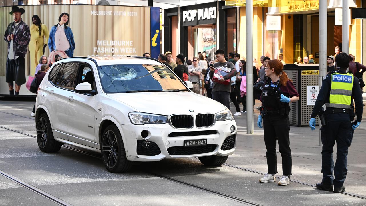 Police followed it into the CBD, where the SUV struck a woman on Exhibition Street.