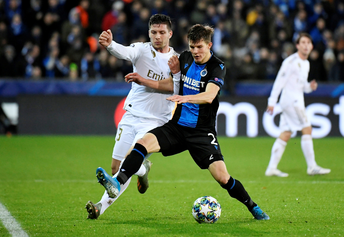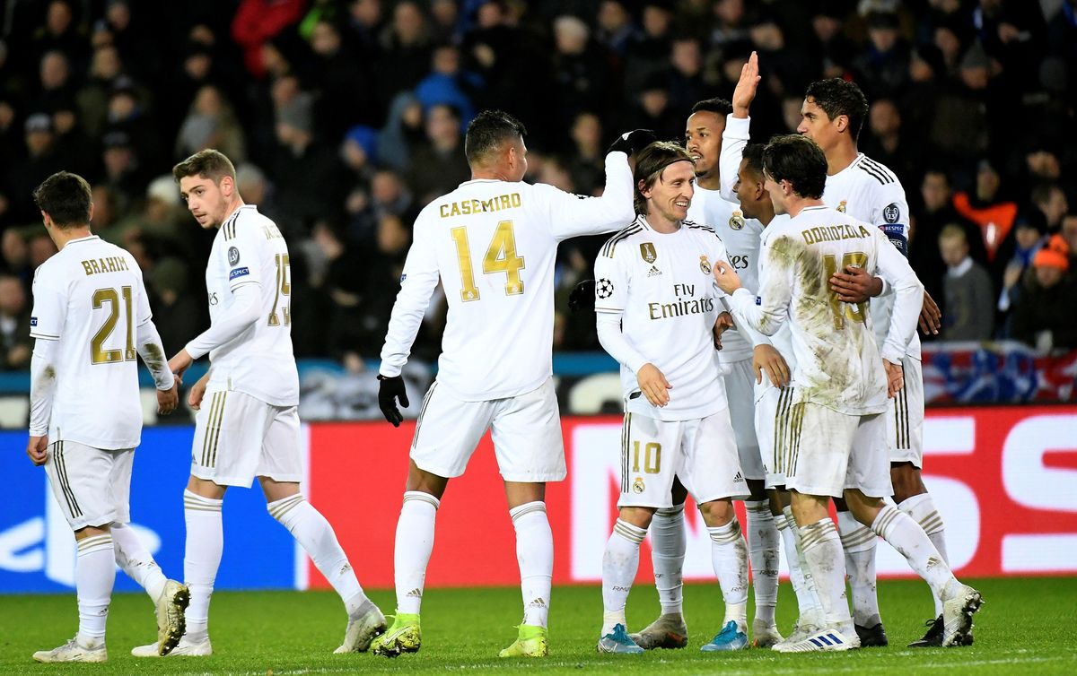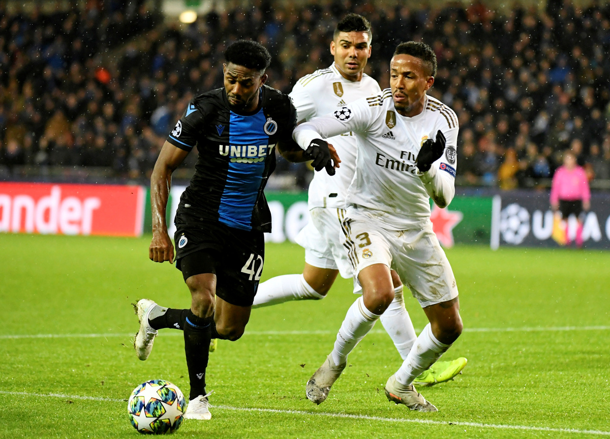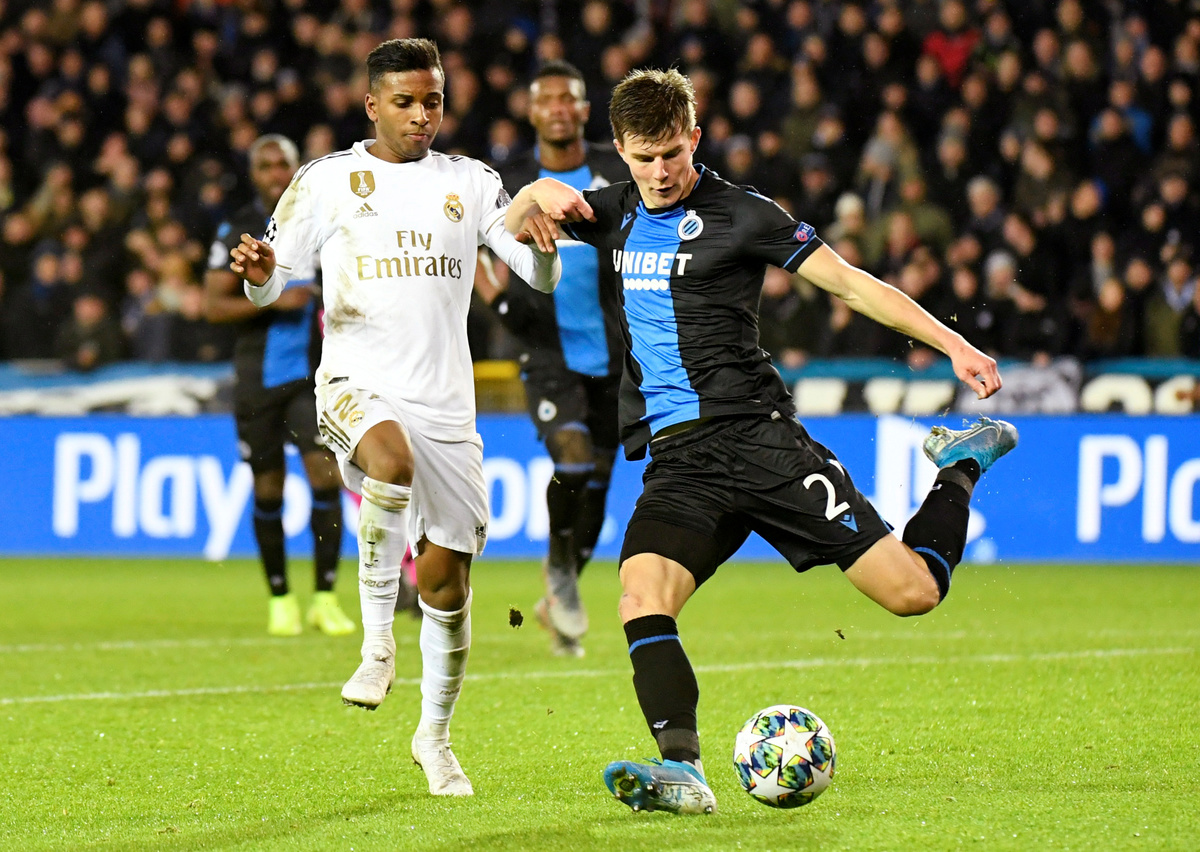 Soccer Football - Champions League - Group A - Club Brugge v Real Madrid - Jan Breydel Stadium, Bruges, Belgium - December 11, 2019 Club Brugge's Eduard Sobol in action with Real Madrid's Luka Jovic REUTERS/Piroschka van de WouwSoccer Football - Champions League - Group A - Club Brugge v Real Madrid - Jan Breydel Stadium, Bruges, Belgium - December 11, 2019 Real Madrid's Casemiro in action with Club Brugge's Ruud Vormer REUTERS/Piroschka van de WouwSoccer Football - Champions League - Group A - Club Brugge v Real Madrid - Jan Breydel Stadium, Bruges, Belgium - December 11, 2019 Club Brugge's Eduard Sobol in action with Real Madrid's Rodrygo REUTERS/Piroschka van de WouwSoccer Football - Champions League - Group A - Club Brugge v Real Madrid - Jan Breydel Stadium, Bruges, Belgium - December 11, 2019 Real Madrid's Rodrygo celebrates scoring their first goal with Vinicius Junior REUTERS/Piroschka van de WouwSoccer Football - Champions League - Group A - Club Brugge v Real Madrid - Jan Breydel Stadium, Bruges, Belgium - December 11, 2019 Club Brugge's Emmanuel Dennis in action with Real Madrid's Eder Militao REUTERS/Piroschka van de WouwSoccer Football - Champions League - Group A - Club Brugge v Real Madrid - Jan Breydel Stadium, Bruges, Belgium - December 11, 2019 Club Brugge's Thibault Vlietinck in action with Real Madrid's Isco REUTERS/Piroschka van de Wouw