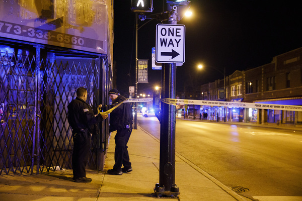 CHICAGO _ A worker in a Domino's Pizza shop on Chicago's Far North Side heard gunfire behind him and turned just as the glass front door shattered.