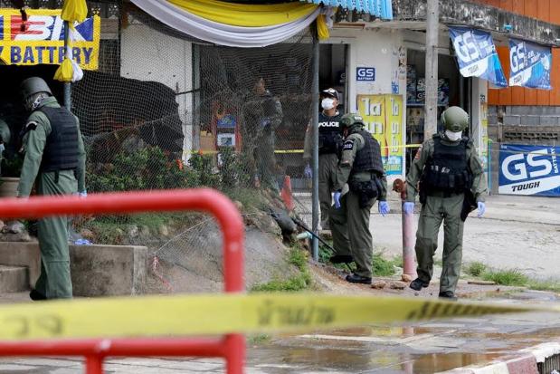 Police said the explosive hit a bunker in front of the police booth near Krungthai Bank’s Bannang Sata branch in tambon Bannang Sata.