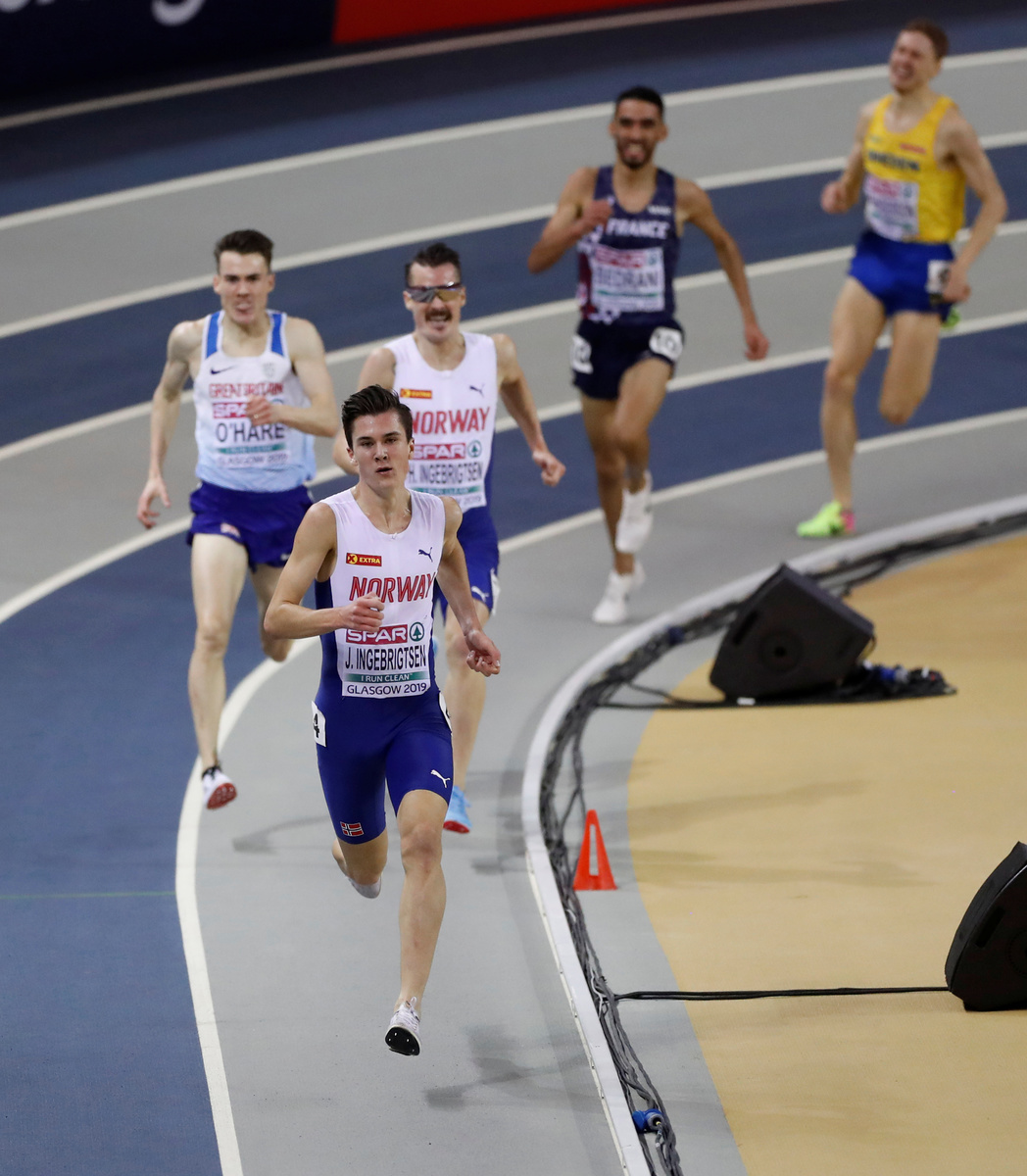 GLASGOW (Reuters) - Norway enjoyed a bumper night at the European Indoor Athletics Championships on Saturday as teenager Jakob Ingebrigtsen won the 3,000 metres ahead of his bronze medal-winning brother Henrik and Karsten Warholm stormed to gold in the 400 metres.
