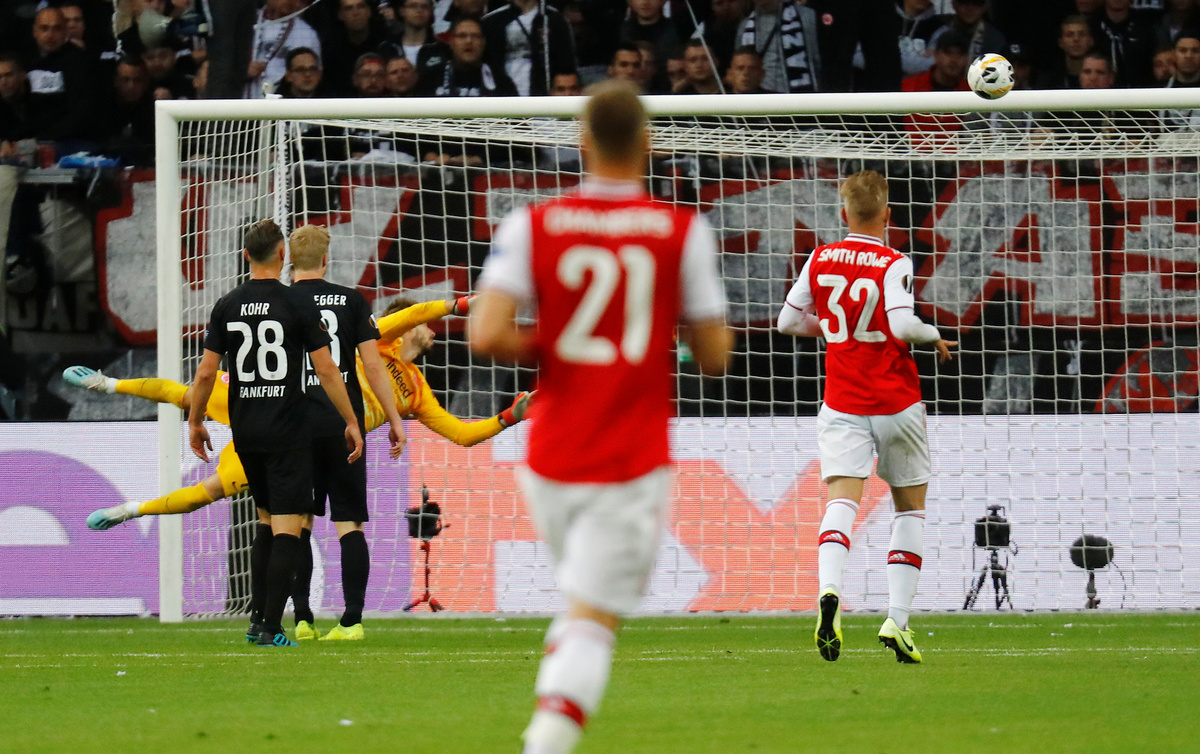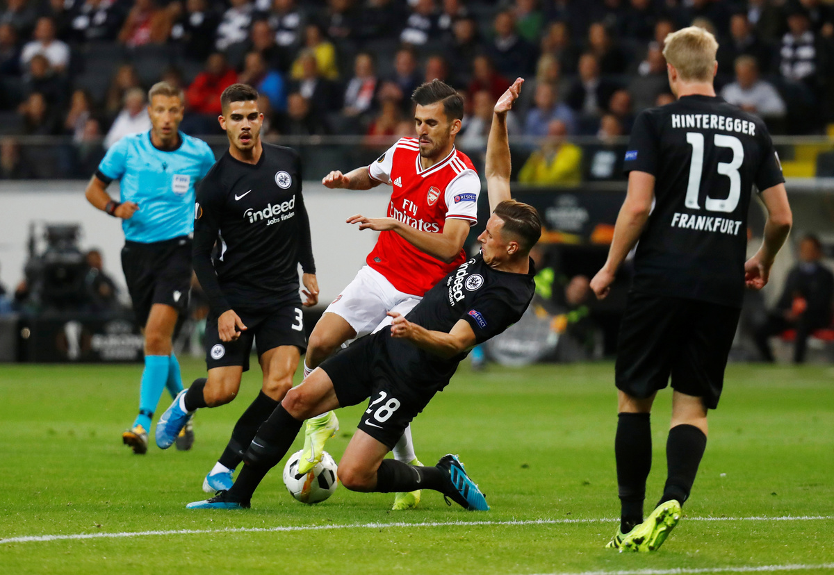 Joe Willock put Arsenal ahead in the first half with a deflected shot that flew in off the underside of the crossbar, but Frankfurt battled gamely until midfielder Dominik Kohr was sent off for picking up two yellow cards in the second half.