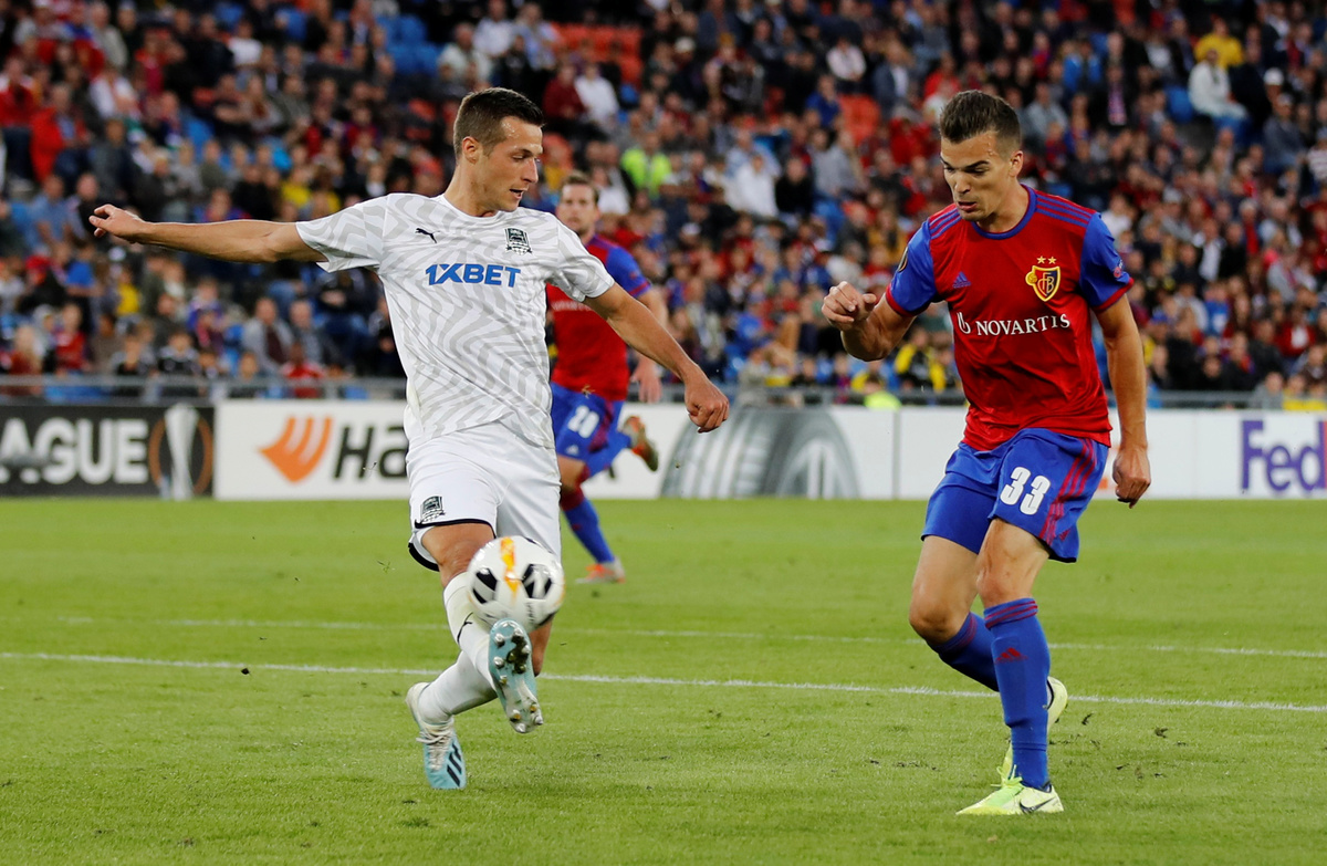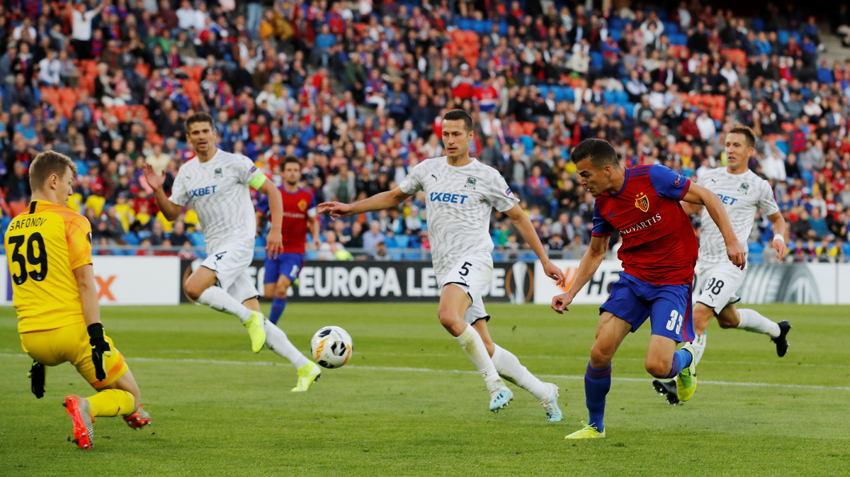Winger Kevin Bua scored twice for Swiss side FC Basel as they got off to the perfect start in Group C by hammering visiting Krasnodar 5-0, while Getafe beat Trabzonspor 1-0.