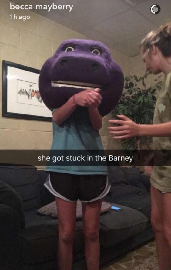 The 15-year-old wasn’t prepared for Internet fame. She didn’t even have a Twitter account until this week. There, she searched “stuck in Barney” and found tweets from hundreds of strangers. On Instagram, she received numerous random follow requests. High school mascots have reached out in solidarity. There are memes.