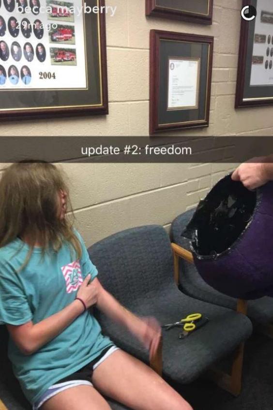 Of course, as budding documentarians, the teens captured it all on Snapchat. Darby laughing. Darby wincing. Darby yowling and, like she always does, Darby making jokes.