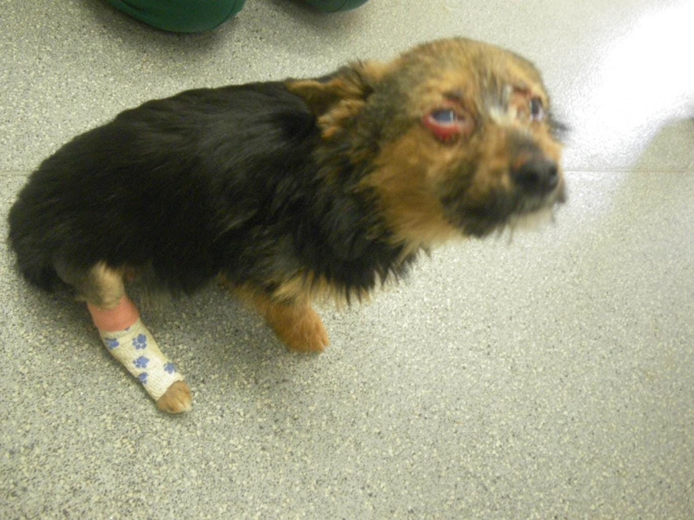 Investigators said the dog had been kicked, punched and abused for several hours before being discovered.